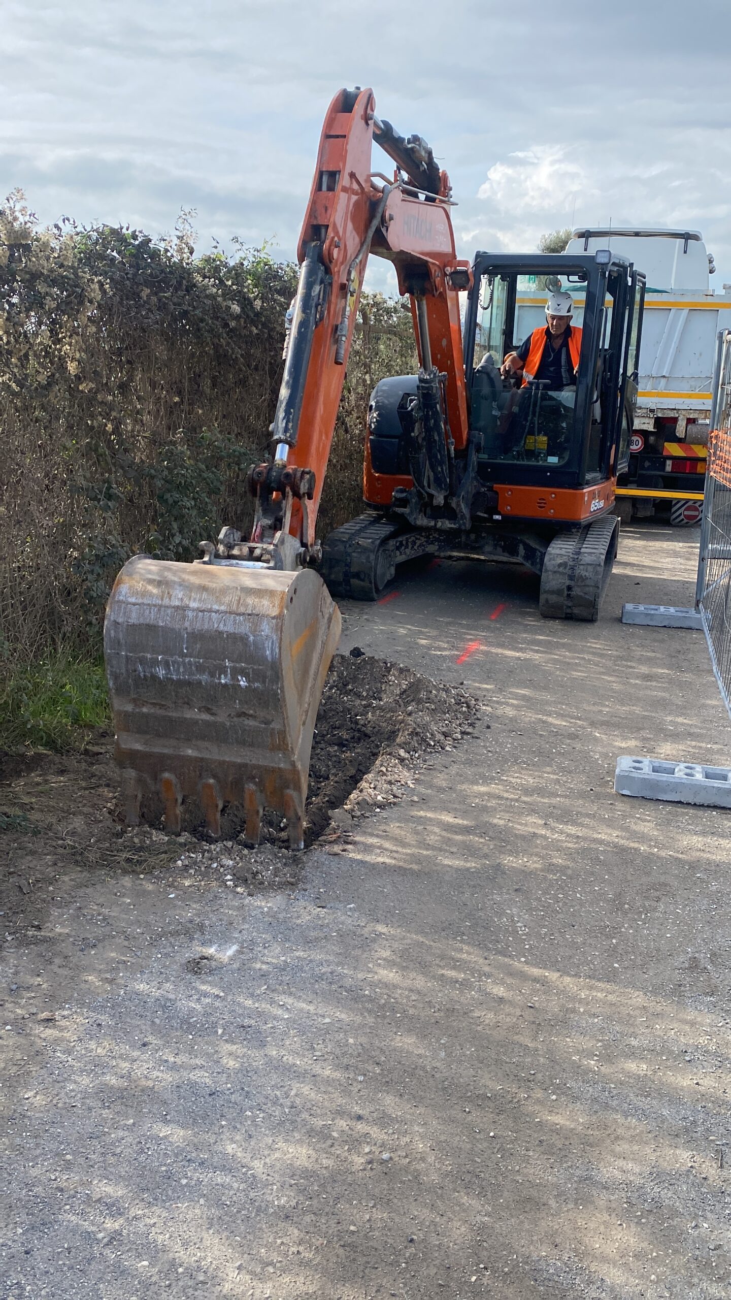 Civil works are a key component of our operations for the construction of High Voltage electrical connections. We offer a complete service that includes trench excavations for cable laying, construction of joint bays and manholes, guided crossing works, backfilling with certified materials, compaction, and both temporary and permanent road reinstatements.
